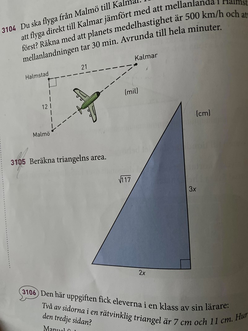 Aha såg nu att hypotenusan i bilden var roten ur 117. ok, såg nu vart felet är