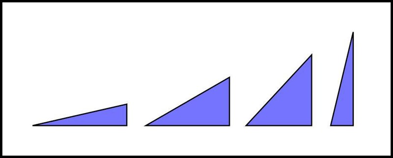 (flera rätvinkliga trianglar med lika långa hypotenusor)