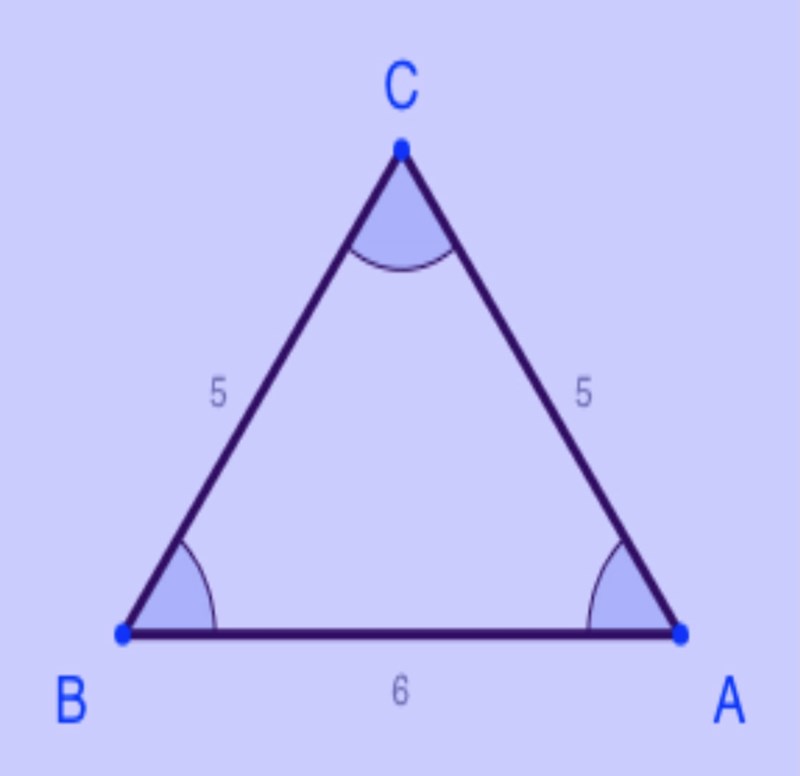 I triangeln ABC är AB=AC=5 och höjden från basen BC till toppen av triangeln är 4cm.