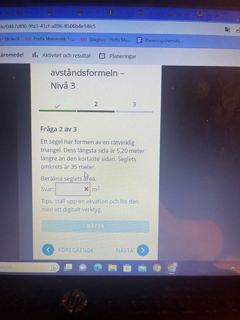 Då blir det kortaste sidan, en katet, (x-5,2) meterKalla den andra kateten för exempelvis y.