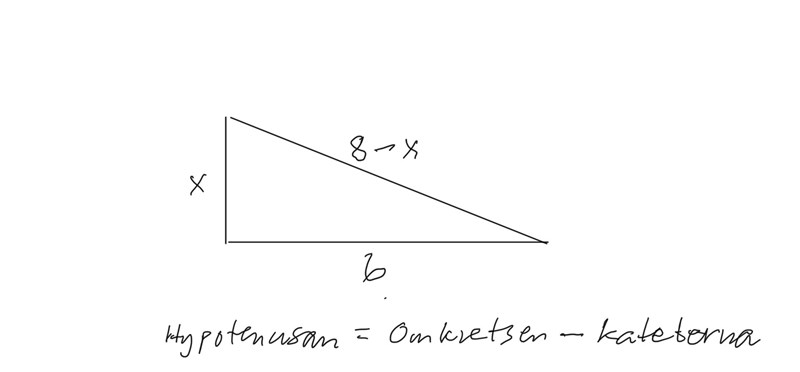 En rätvinklig triangel har omkretsen 14 cm. En av kateterna är 6 cm. Hur långa är de övriga sidorna i triangeln?