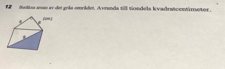 Du bör dock inte avrunda som du gjort utan använda de exakta värdena för de olika längderna, dvs. rotenur(x) utan att slå det på miniräknaren och få ett närmevärde. Annars blir avrundningsfelet i svaret för stort.