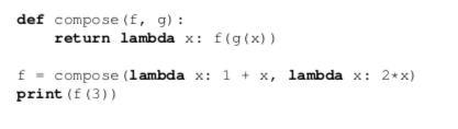 Anropet till compose ger en funktion som utför f(g(x)), där f(x) = 1+x och g(x) = 2x.
