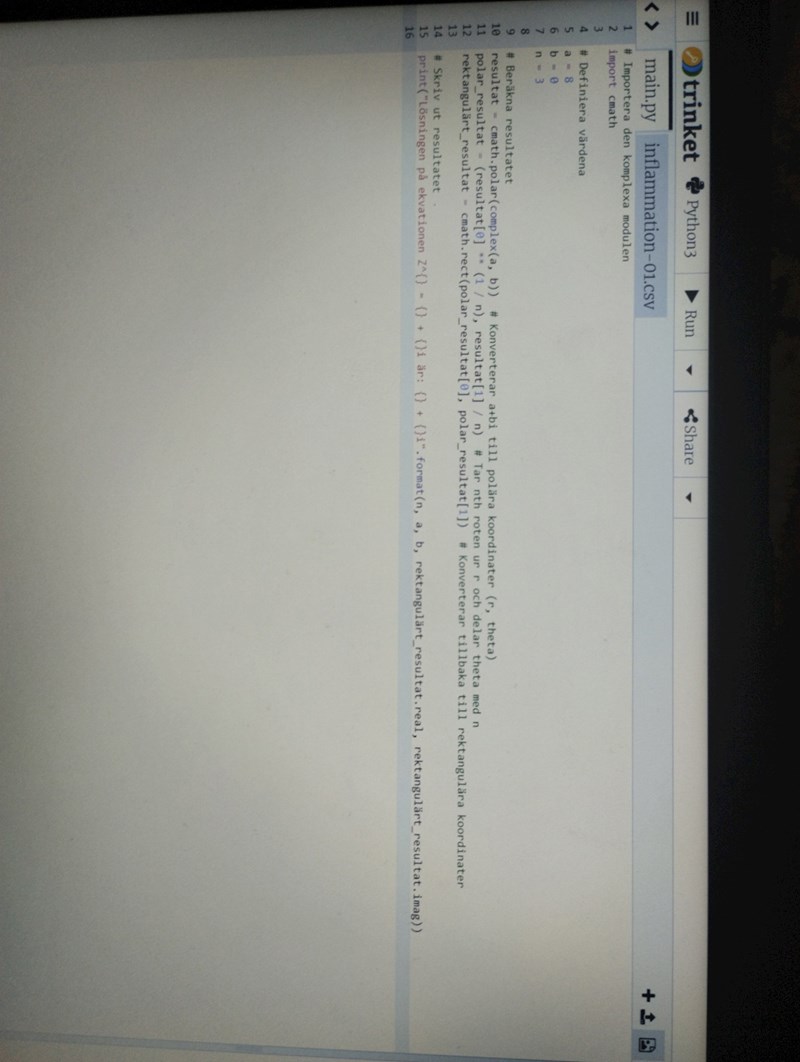 Programmeringsuppgift:Skriv ett program som löser ekvationen, Z^n =a + bi