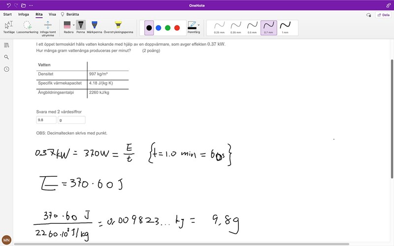 Q.7 beräkna massan på vattenånga, ångbildningsentalpi är känd
