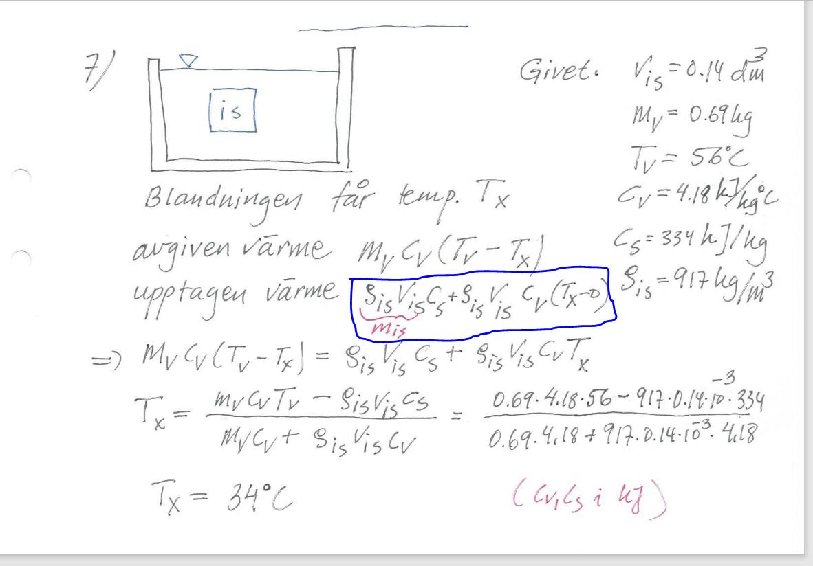 Notera att om isen inte varit 0 grader hade det också åtgått värme till att värma den till 0 grader.