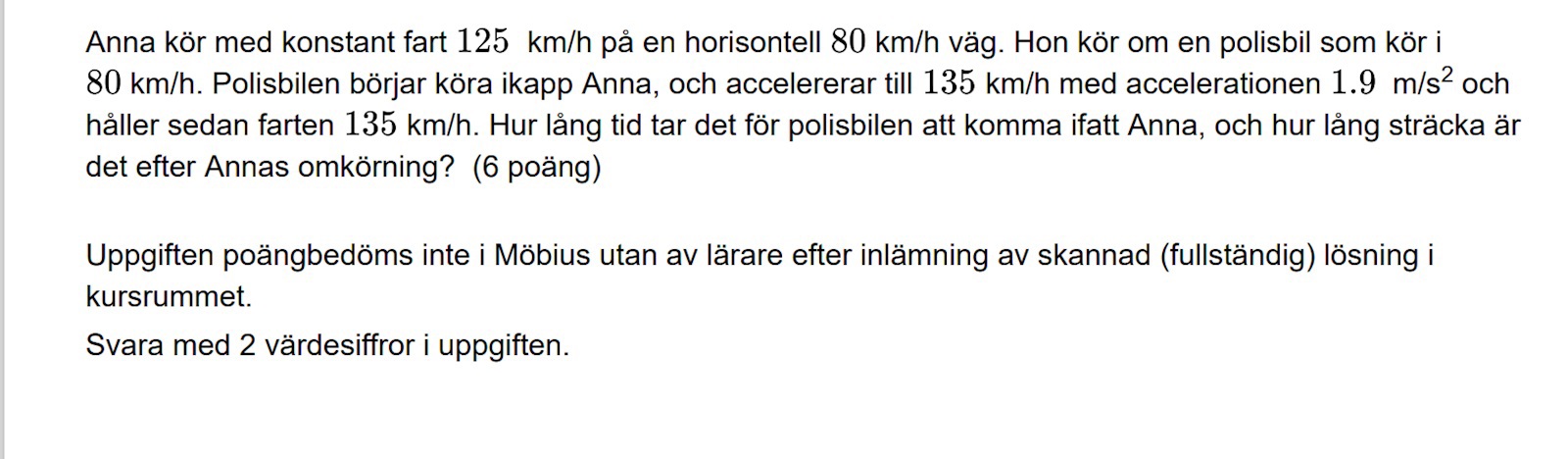 Det är exakt vad facit består av, sträcka(arean under kurvan) för Anna = sträcka för polisen