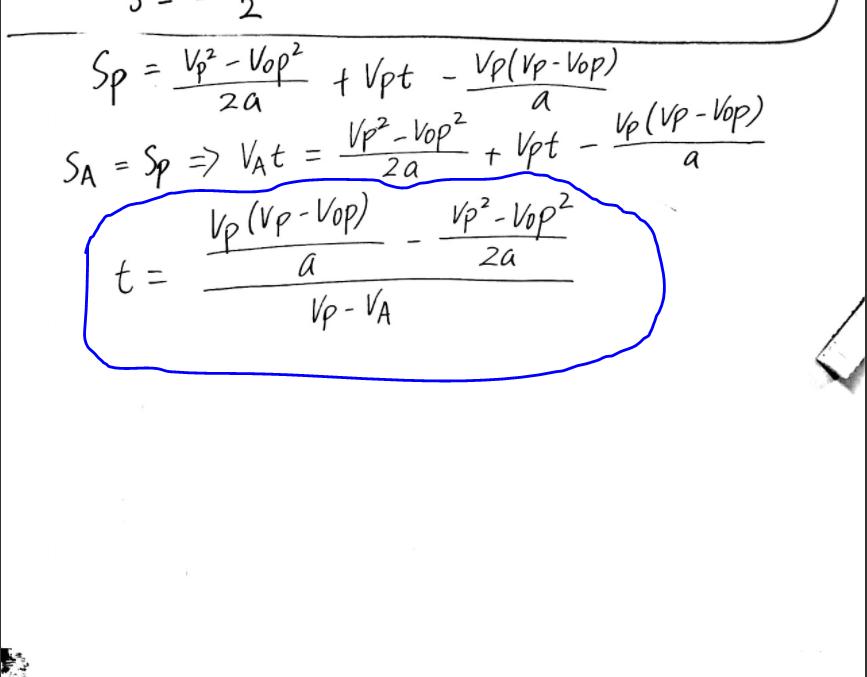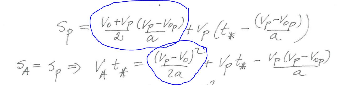 Detta följer också direkt av att likställa arean under fartkurvorna. Om vi däremot förenklar deras uttryck får vi: