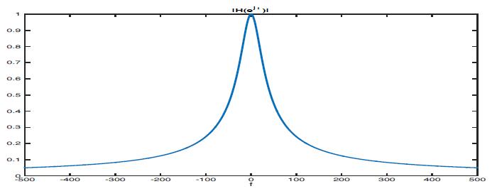 Titta på hur kurvan ser ut för positiva värden på frekvens. Vid noll ser det ut som H(jw) är 1 och blir lägre och lägre ju högre frekvensen blir.