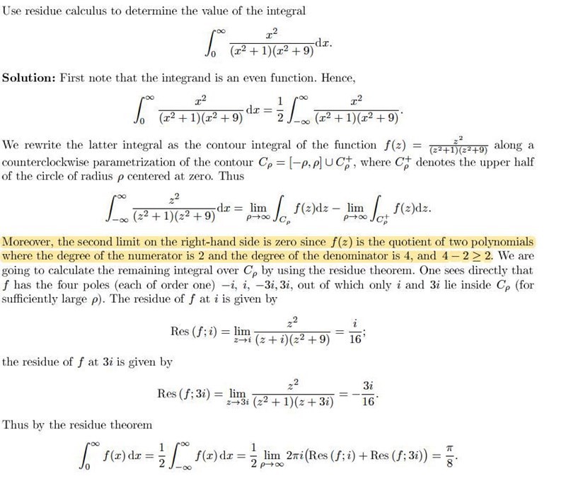 I oändligheten räcker det att kolla på vad som dominerar, så i täljaren har vi ungefär z^2 och i nämnaren ungefär z^4, alltså beter sig funktionen ungefär som 1/z^2, som går mot 0 även om du slänger på längden på intervallet(som är ungefär z).