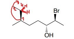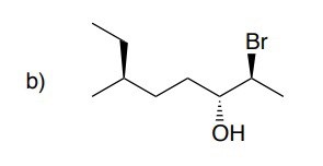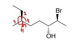 (2S,3R,6S)-2-bromo-6-metyl-oktan-3-ol är facits svar, men det jag har funderingar över är bara stereocentret på kol 6. Ska man verkligen ange R/S när tre av grupperna är lika?