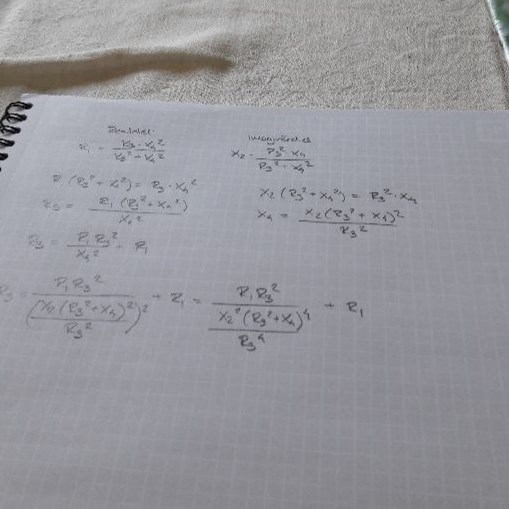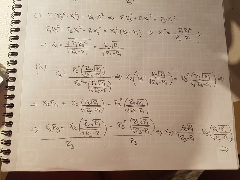 Enligt facit skall man få R_3 = R_1+(((X_2)^2)/R_1) samt X_4=X_2+(((R_1)^2)/X_2)