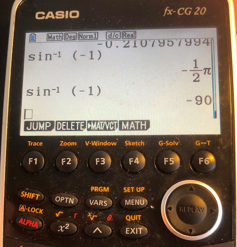 Den övre raden hade jag ställt in i rad och fick det svaret -π/2