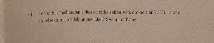 jag kom fram till att  cirkelsektorns medelpunktsvinkel är 3r