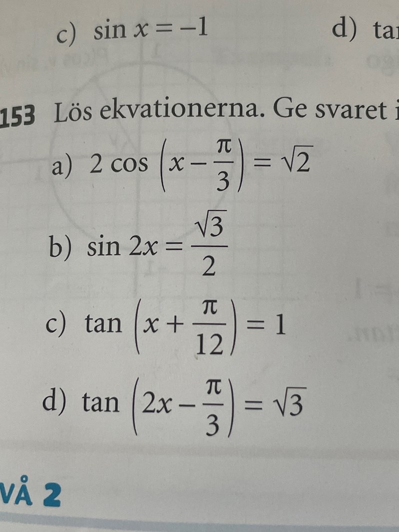 lös ekvationen och ge svaret i radianer