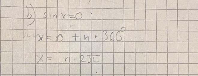 På b) så fick jag x= n•2π