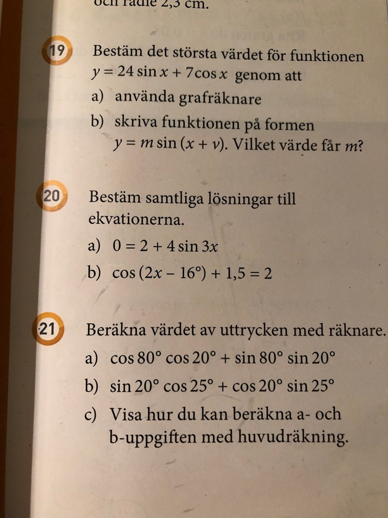 I uppgift 20 b) verkar det vara enklast att fortsätta räkna i grader.