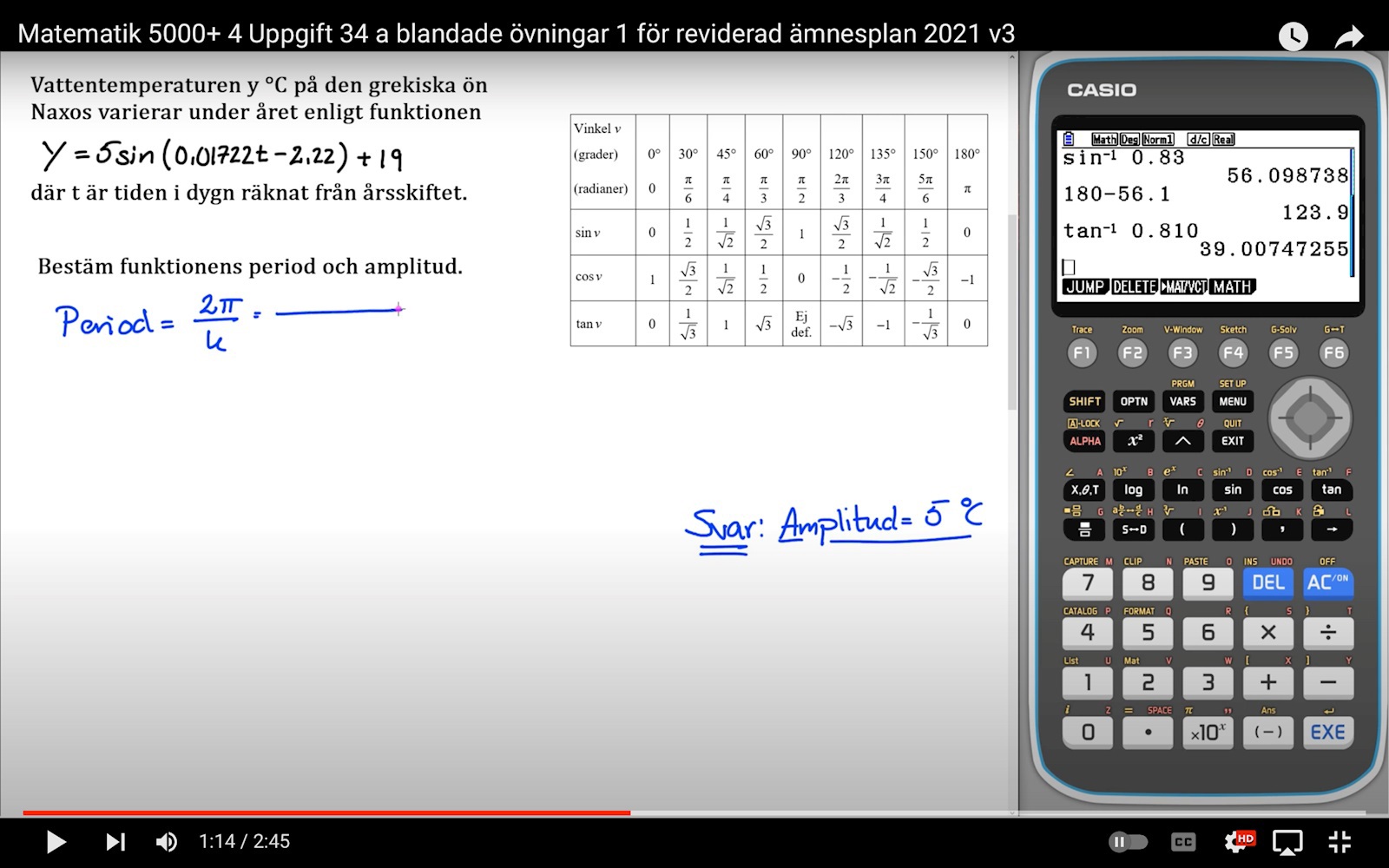 Smaragdalena skrev:När du har kommit så långt i dina matematikstudier som Ma4 skall du alltid utgå från att vinklar mäts i radianer, om det inte uttryckligen står att det är grader.