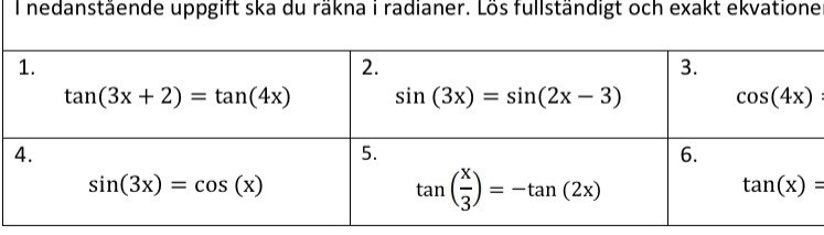man ska räkna allting u radianer och lösa fullständigt samt exakt ekvationen.