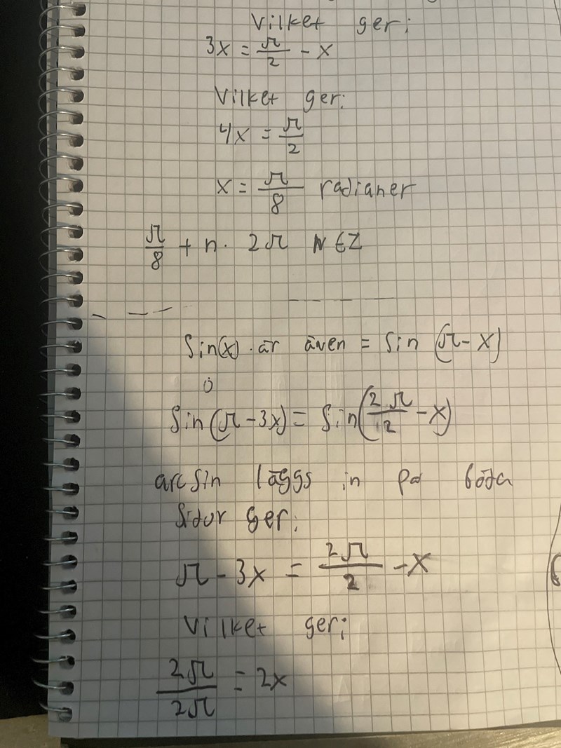 Okej tack!!! Så mycket. Men finns det fler lösningen på x ? Eller det gör det kanske ej eftersom vi får med alla när vi tar + n * x