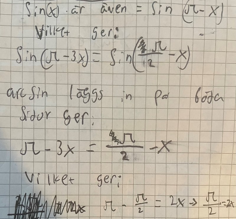 Så jag ska ta arcsin på hela vänsterledet och hela högerledet? Så som i inlägg 4?