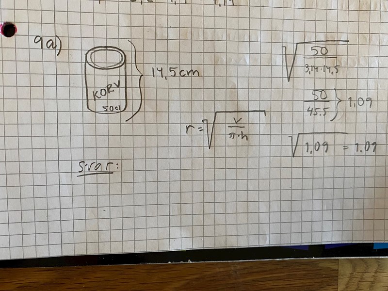 Så jag ändrar 50^3 / 3.14*14,5 bara istället ? Och tar därefter roten ur ? 😓