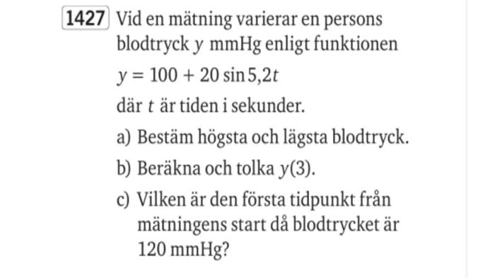 Ja, eftersom sinus varierar mellan -1 och 1 så kommer blodtrycket att variera mellan 100 - 20 = 80 och 100 + 20 = 120.