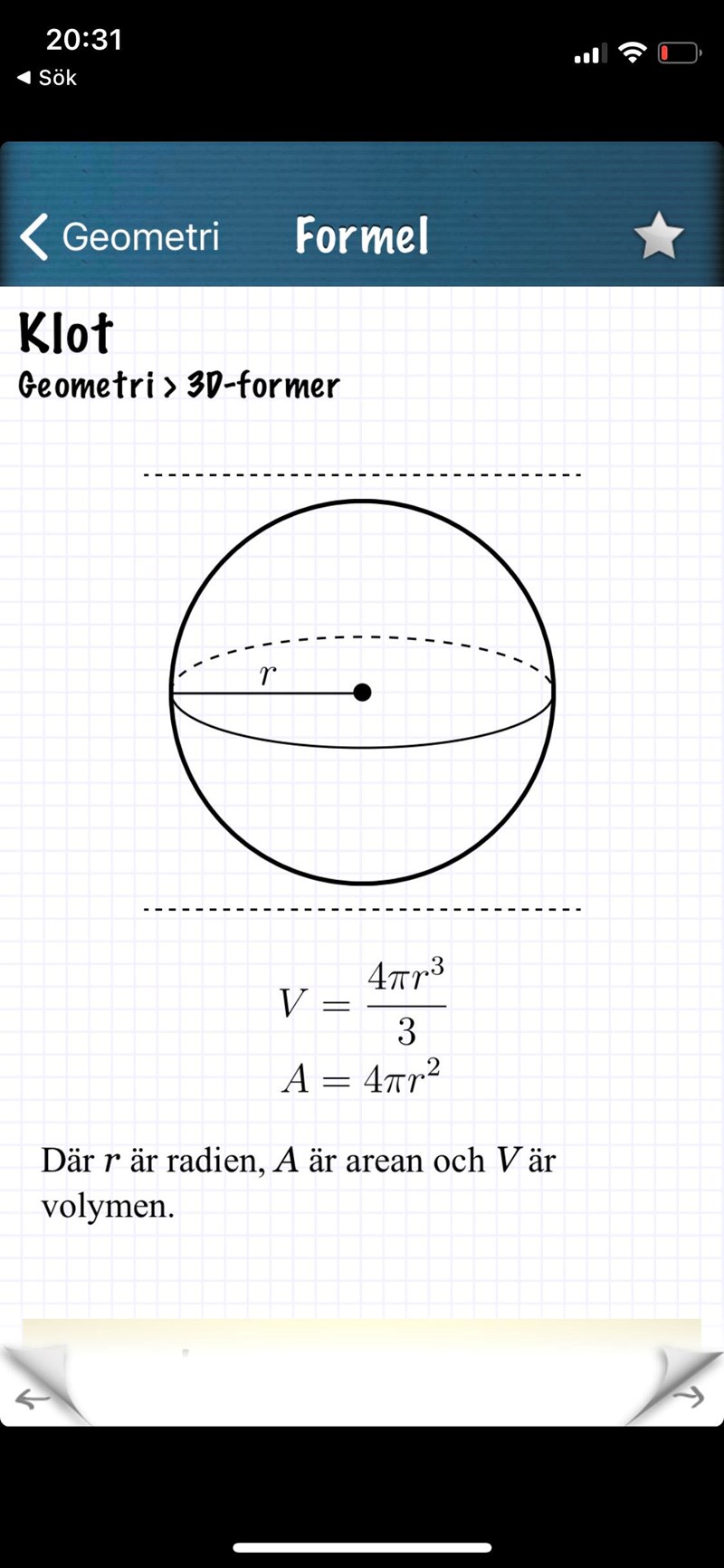 Smutstvätt skrev:Välkommen till Pluggakuten! Hur lyder formeln för volymen av ett klot? :)