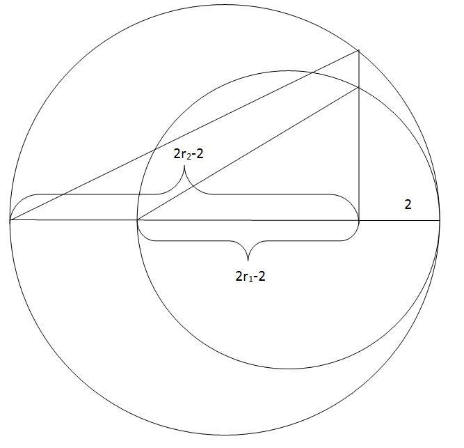 Låt oss betrakta den lilla cirkeln in din figur. Säg att den cirkeln blir så liten att 2r1-2 närmar sig noll. Hittar man tre likformiga trianglar då?