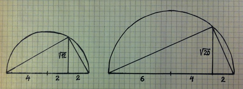 Här visar jag två lösningar, den vänstra med r=4 och den högra med r=6.