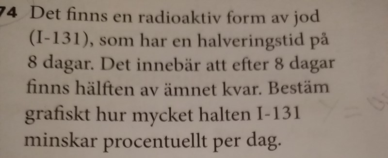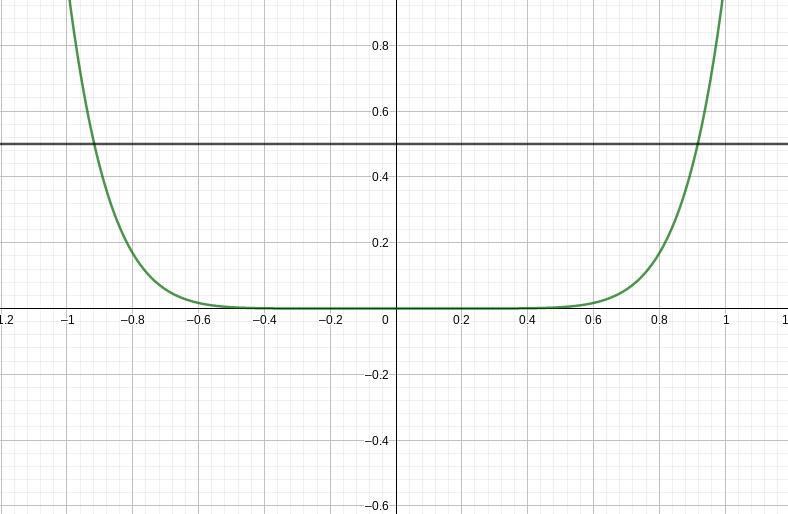Nu har du lagt upp en graf för potensfunktionen y = x8 men det du är intresserad av är att ta reda på värdet för basen x i exponentialfunktionen f(t)=xt när man vet att x8 = 0,5.