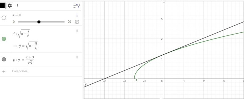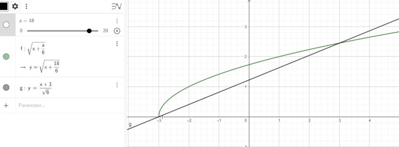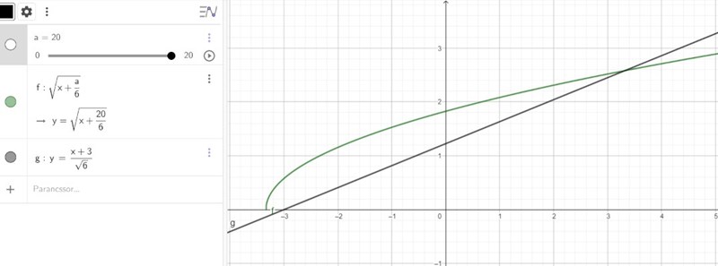 • sedan har du bara en skärningspunkt. (Det syns t.ex. med a=20 på tredje bilden.)