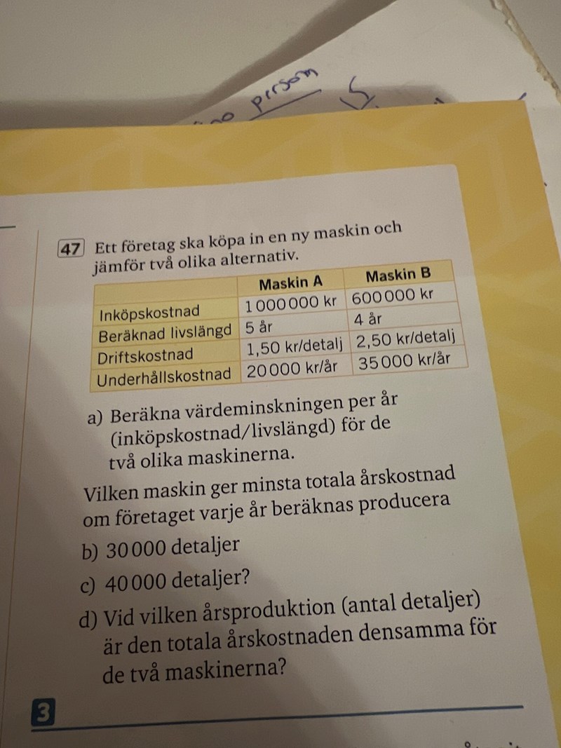 kan förklara hur man räkna totala årskostnad på fråga B?