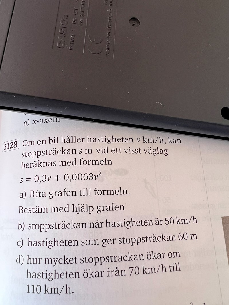 Du ska använda grafen för att beräkna svaren. c) har du ännu inte lärt dig att lösa algebraiskt.