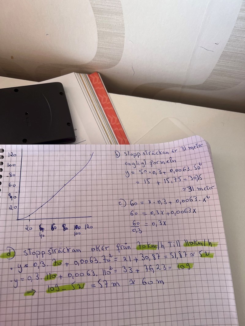 b) kan du lösa algebraiskt så det stämmer det du gjort. Annars är det bara att kolla vad y-värdet blir när x-värdet är 50.
