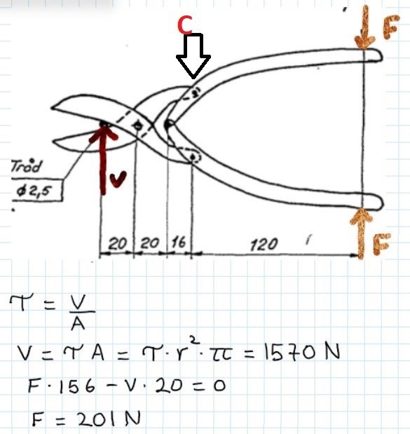 Bortse från kraften F och de högra skänklarna, Hur stor måste kraften C vara i bilden nedan?