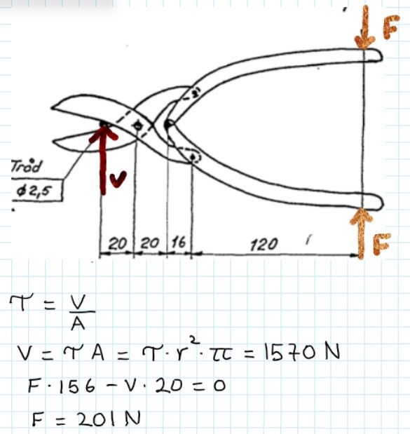 Jag har kommit fram till detta men svaret ska vara 103 N. Vad gör jag för fel?