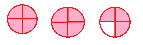 Vi kan ta täljaren som exempel. Du har 2 hela och dessutom 3 fjärdedelar.