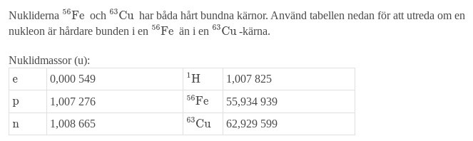 Här verkar de ju räkna med massan för 26 respektive 29 elektroner både för de fria nukleiderna och för atommassorna. Jag antar att detta också fungerar om elektronmassorna ska ta ut varandra, men finns det något fall då elektronmassorna inte tar ut varandra?