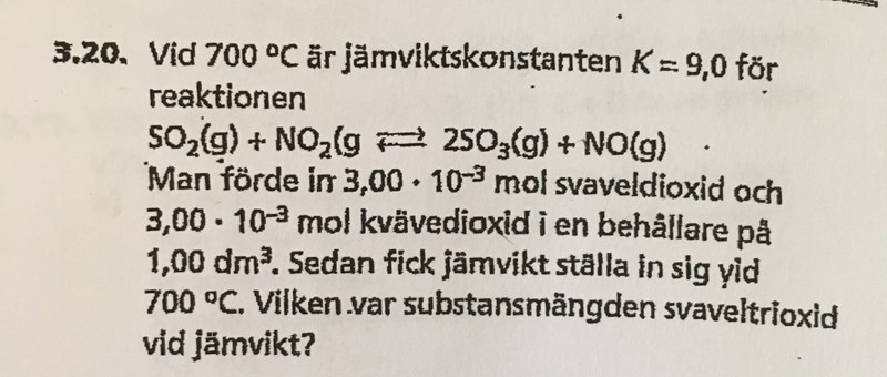 Räkna med kemisk jämnvikt - Substansmängdsproblem