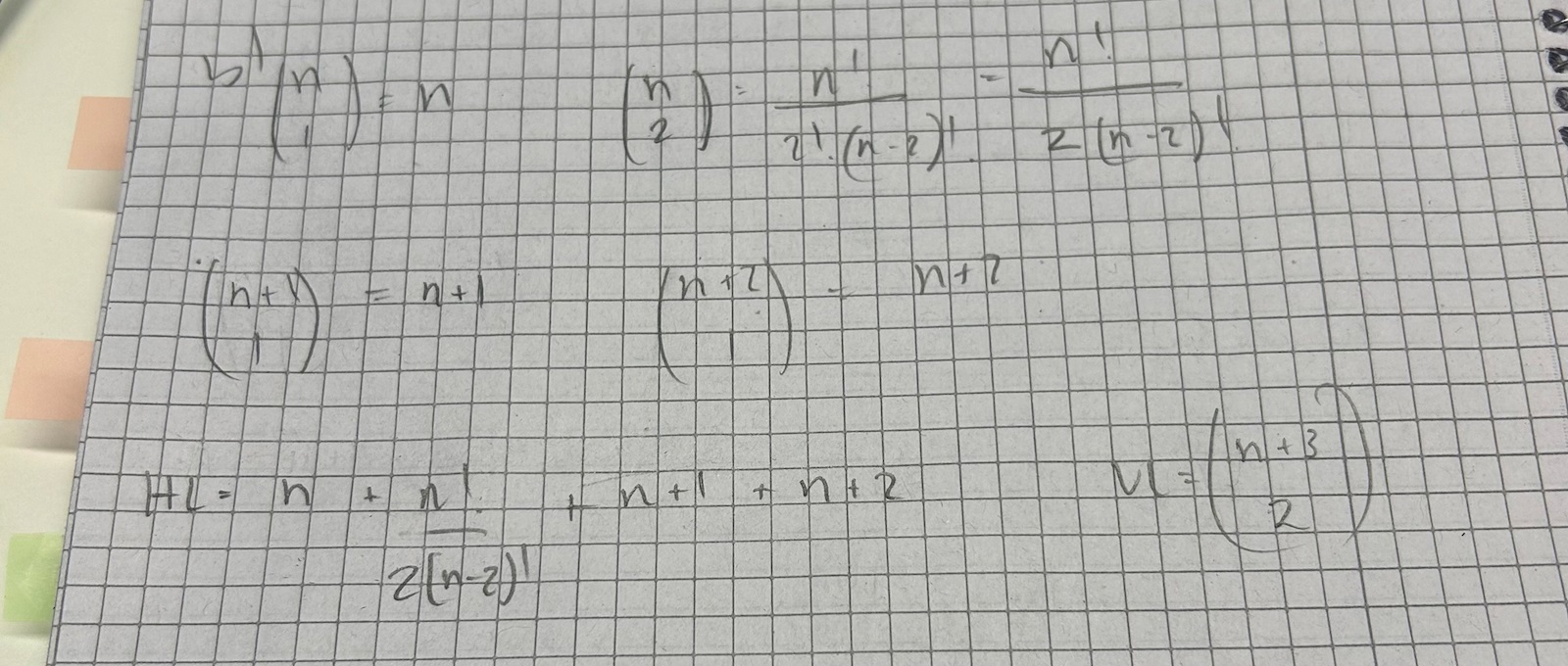 Förenkla [n över 2] till n(n-1)/2 etc