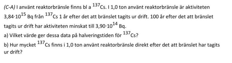 Där A är aktiviteten när bränslet togs ur drift