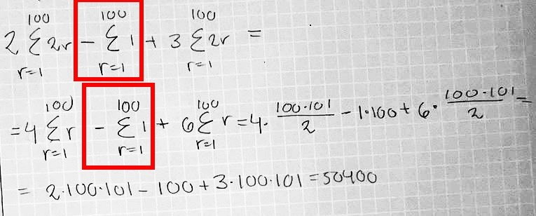 Hej. Jag håller på att räkan med summa tecken men jag får bara fel på denna fråga. Vad är det som blir fel. Det ska vara 50300. Men ja får 50400…