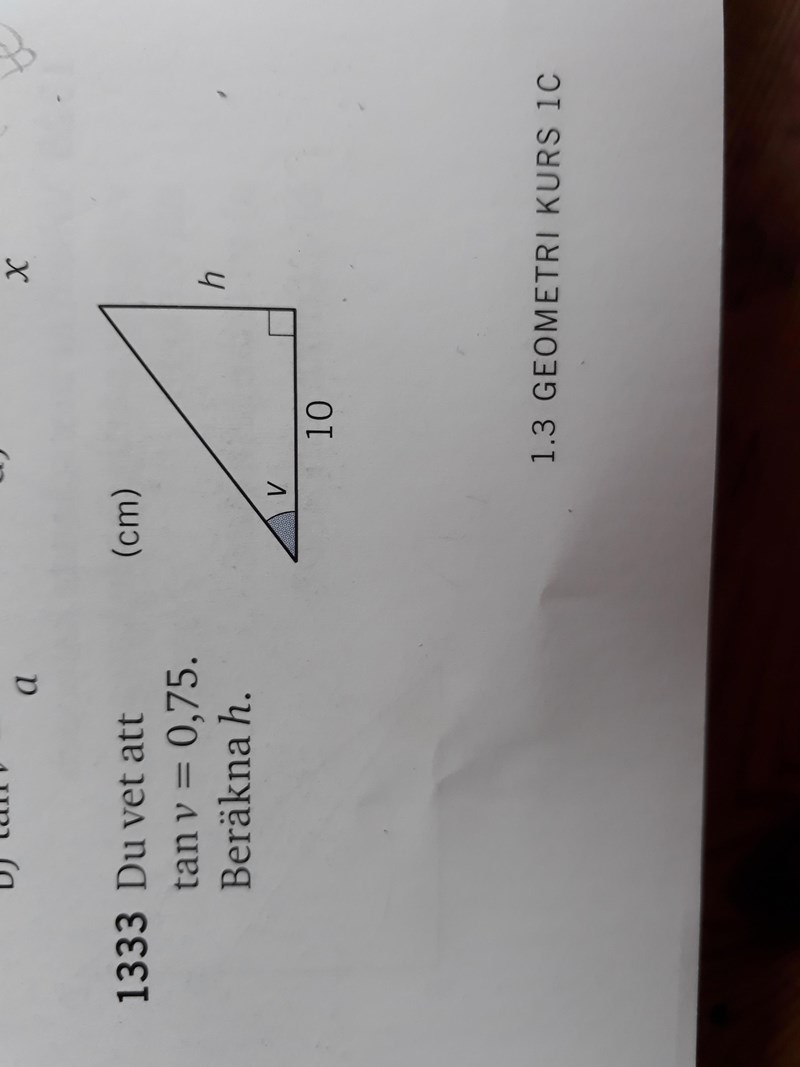 I "h = 10 × tan(0.75)" behandlar du 0,75 som en vinkel. 0,75 är ett förhållande mellan motstående och närliggande sida, inte en vinkel. Om v hade varit angiven hade du kunnat använda dig av tan(v).