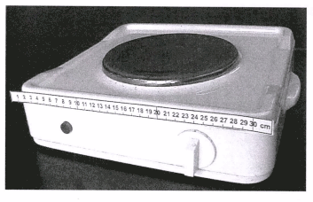 Uppskatta med hjälp av beräkningar vilken högsta temperatur en vanlig kokplatta kan få. Gör själv rimliga antaganden med utgångspunkt från nedanstående bilder.