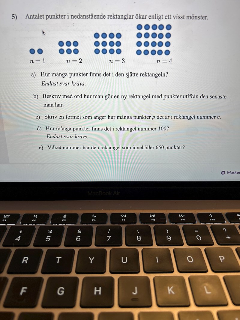 Jag har gjort uppgifterna a-d och kommit fram till formeln p=n2+n