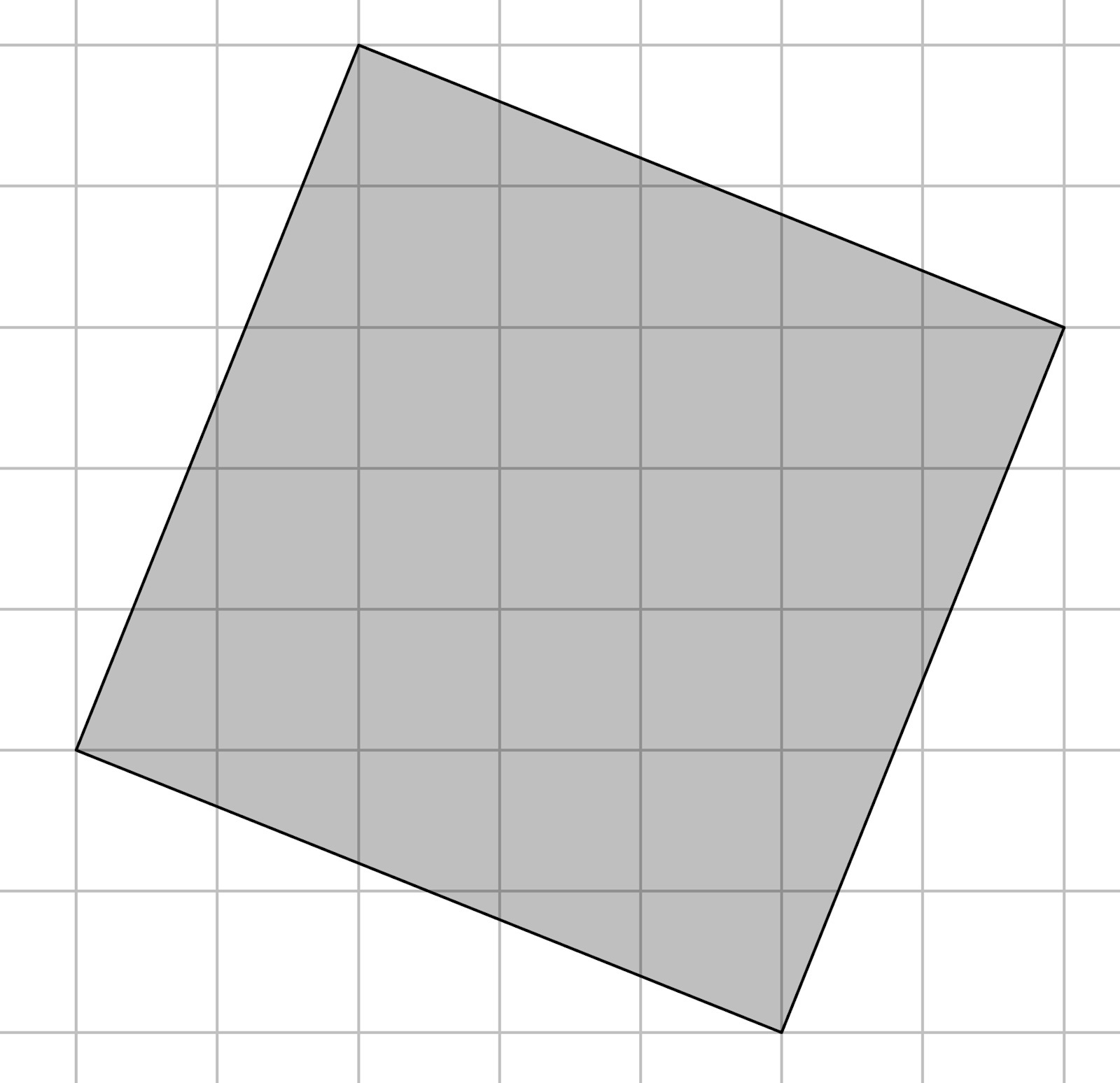 Om du använder rutnätet så ser du att var och en av fyrhörningens sidor är sida i en triangel med rutnätslinjer som är 5 och 2.