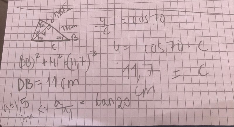 Rätvinklig triangel ACD: cos(20°) = 4,0/AC