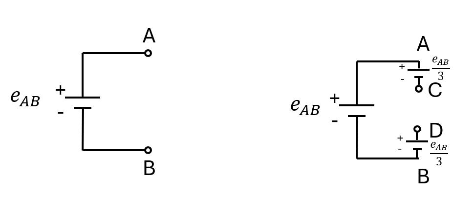 Hur stor blir spänningen mellan A och B i den vänstra bilden?