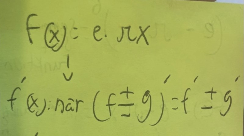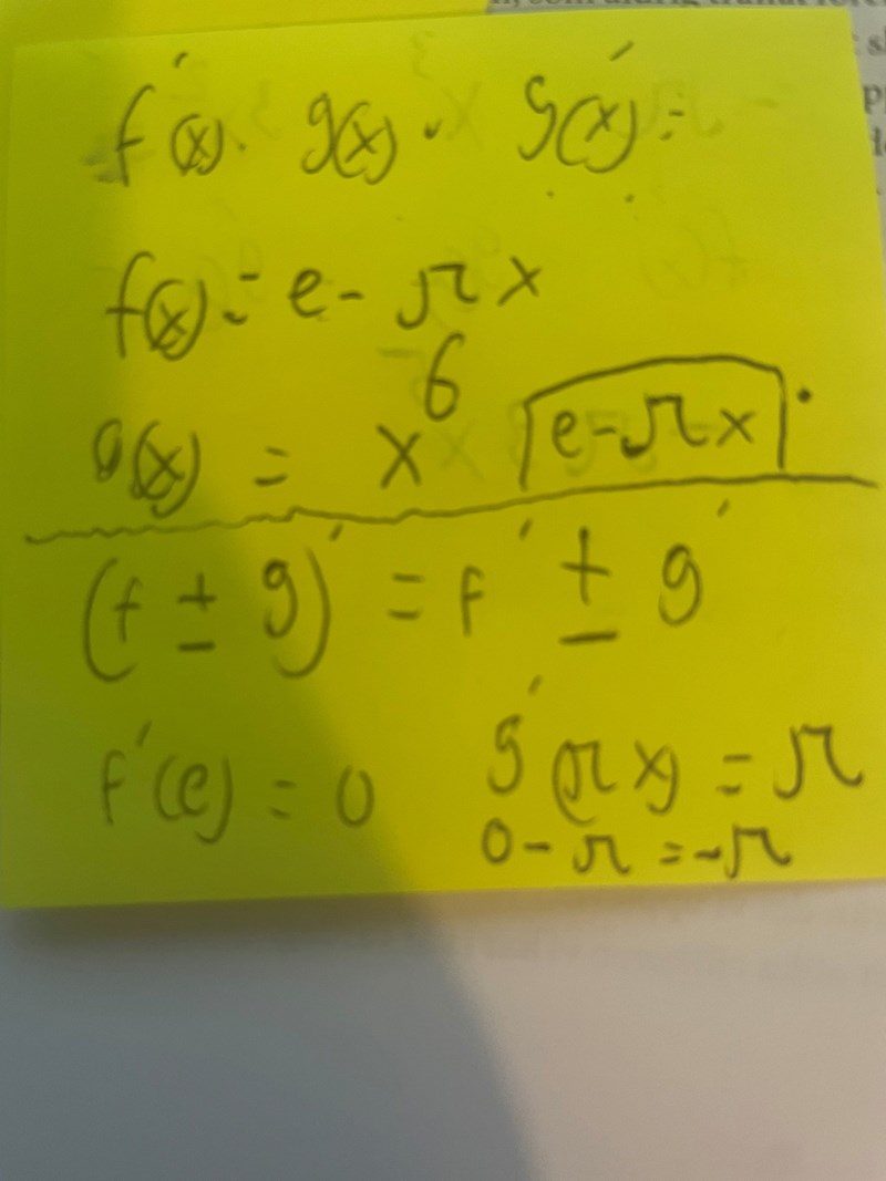 Och på sista raden: Om det vore så att f'(e) = 0 och att g' någonting är så förstår jag inte hur du av det får att f'(x) = -.